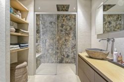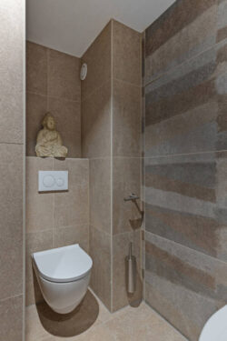 Materialen bepalen voor een groot deel hoe luxe een badkamer aanvoelt. In hotels ziet u zelden drukke patronen of glanzende oppervlakken. In plaats daarvan draait het om textuur, diepte en een hoogwaardige afwerking. Natuursteen en natuursteenlook zijn populaire keuzes voor een hotelgevoel. Ze ogen rijk en tijdloos, zeker wanneer u kiest voor grotere tegels met weinig voegen. Ook betonlook of strak stucwerk draagt bij aan een rustige, luxe uitstraling, doordat wanden en vloeren naadloos in elkaar overlopen.